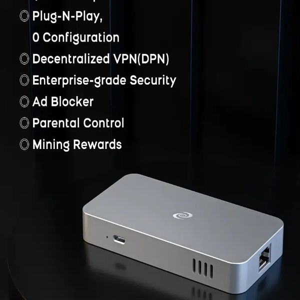 Portable DPN Privacy - Works Anywhere in the World Powerful Home Network Security Solution - All-in-One & Easy to Setup. Decentralized VPN (DPN) - $0 subscription for life. Superior performance - 4-Core processor and 2GB RAM memory. A secure Web3 gateway that protects all your IoT devices. Blocks all ads. One-click parental control. Share bandwidth to earn rewards.